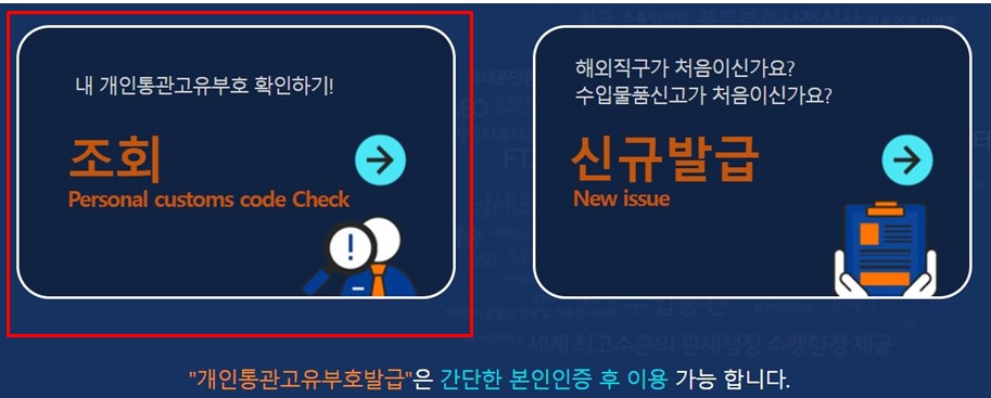 이제, 개인고유통관부호 조회 방법을 알아보겠습니다.