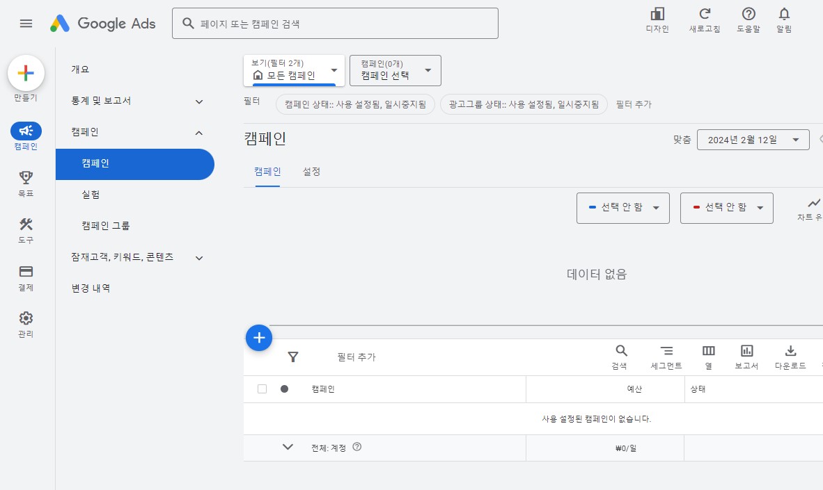 캠페인을 만들면 비용을 지불해야 하기 때문에, 반드시 「캠페인 없이 계정 만들기」를 눌러주셔야 합니다.