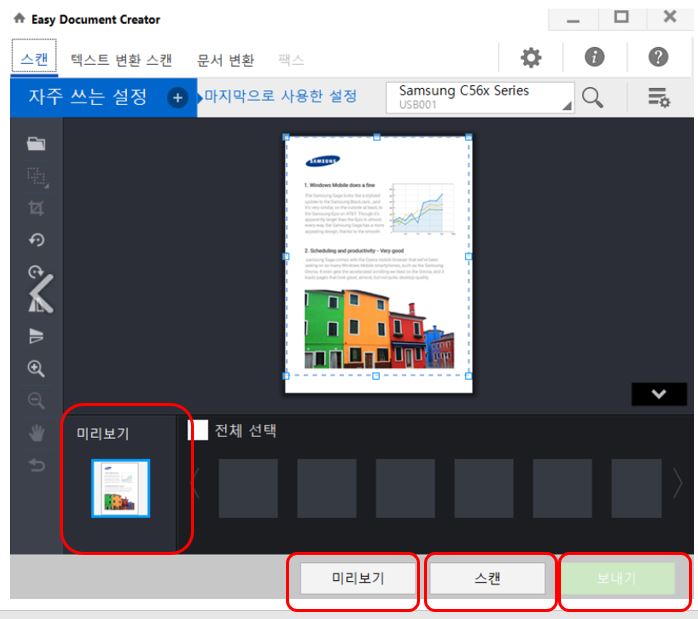 2. 컴퓨터에서 Samsung Easy Document Creator를 실행시킵니다.