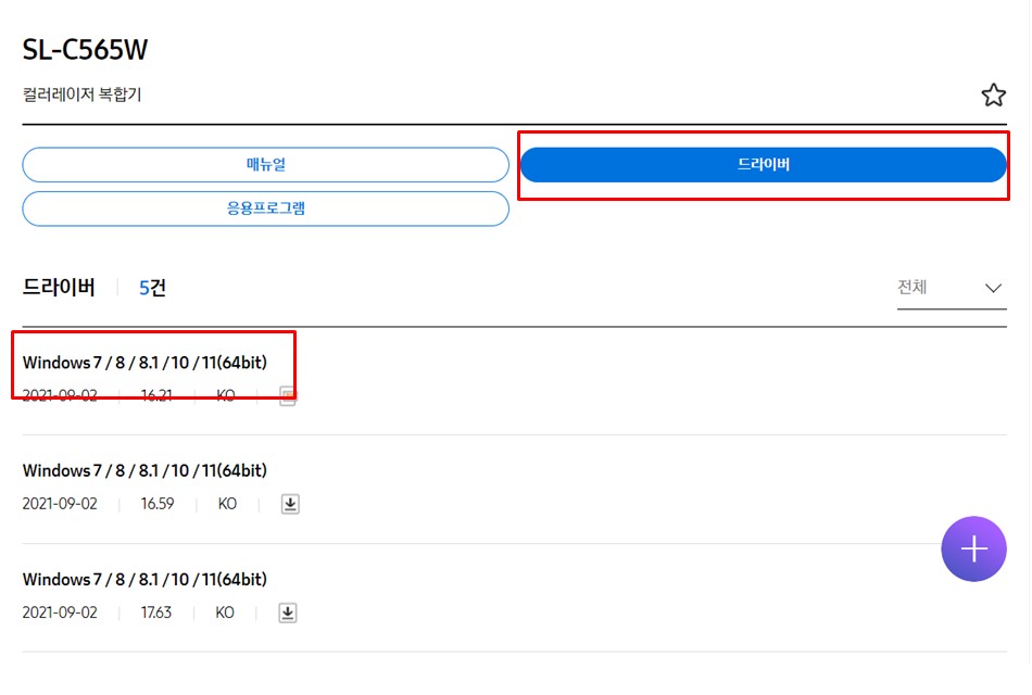 여기에서 드라이버 설치를 할 모델명을 선택하세요.
