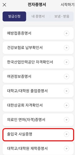 5. 아래로 스크롤하면 '출입국 사실 증명'이 보일 것입니다.