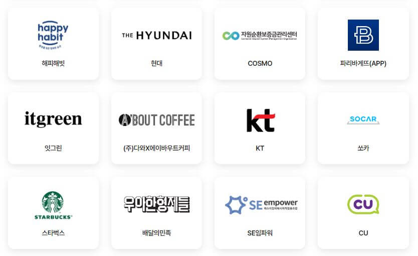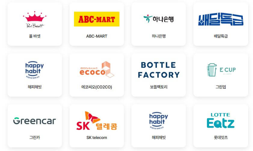 - 친환경제품 구매 : 참여 기업의 친환경 제품을 구매하면 포인트를 받을 수 있습니다.