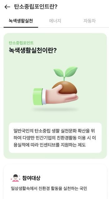 이 제도에 가입하면 일상생활에서 탄소 배출을 줄이는 활동을 하면 포인트를 적립받을 수 있습니다.