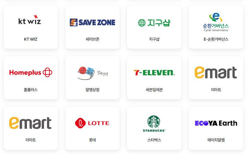- 다회용기 사용 : 참여 매장에서 텀블러, 다회용 컵 등을 사용하면 포인트를 적립받을 수 있습니다.